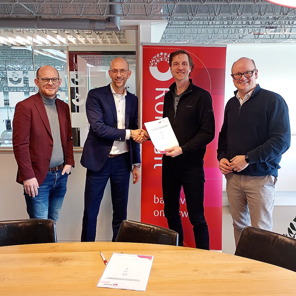 Op 12 maart '26 zetten Wytze Niezen (bestuurder Ronduit Onderwijs) en Michiel Hogendoorn (namens De Geus Bouw) hun handtekening onder de overeenkomst. Daarmee is het officiële startsein gegeven: de verbouw van Nicolaas Beets kan écht beginnen!